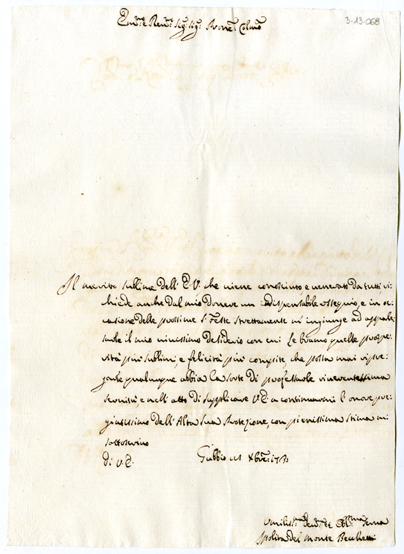 Lettera di Ippolita del Monte Becchetti al cardinale Annibale Albani (1730 dicembre)