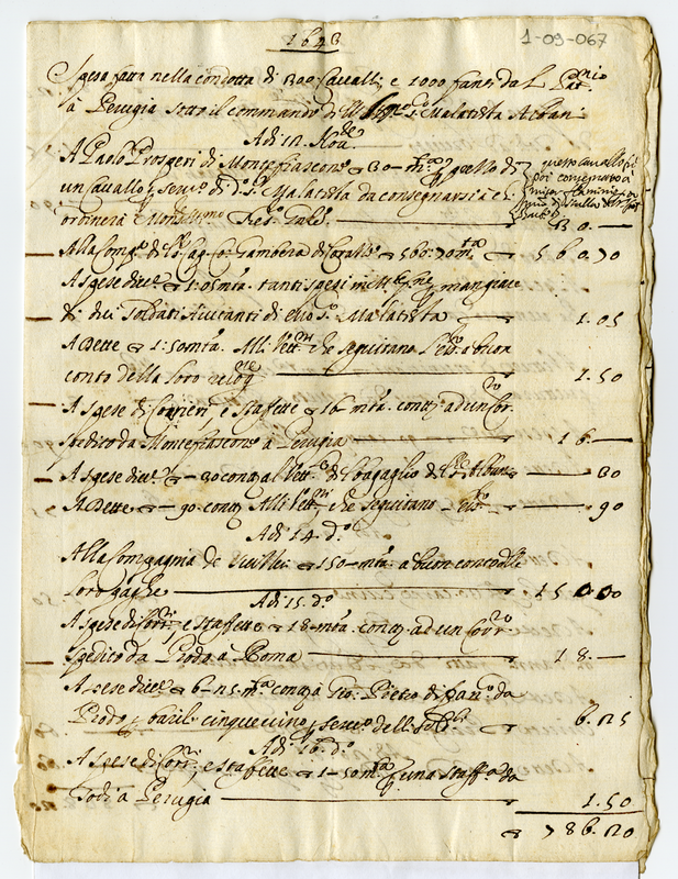 Spesa fatta nella condotta di 300 Cavalli e 1000 fanti dal Patrimonio à Perugia sotto il commando dell'Illustrissimo Signor Malatesta Albani