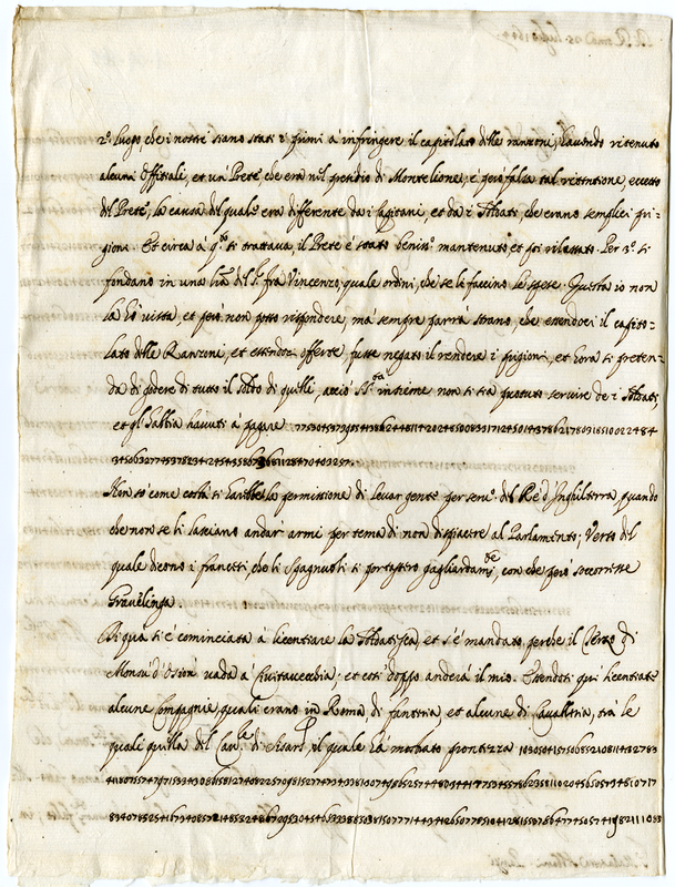 Lettera del cardinale Barberini Francesco senior a Malatesta Albani (1644 luglio 25)
