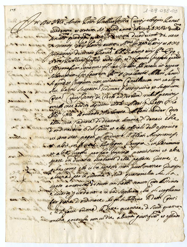 3. Lettere, e scritture, dalle quali appariscono Li Servigij fedelmente resi alla Sede Apostolica da Malatesta Albani sotto il Pontificato d'Urbano Ottavo, tanto in tempo di Guerra, quanto in tempo di pace alla Sua morte seguita in Francia Li 7 Ottobre 1645. Distintamente indicate ne seguenti fogli