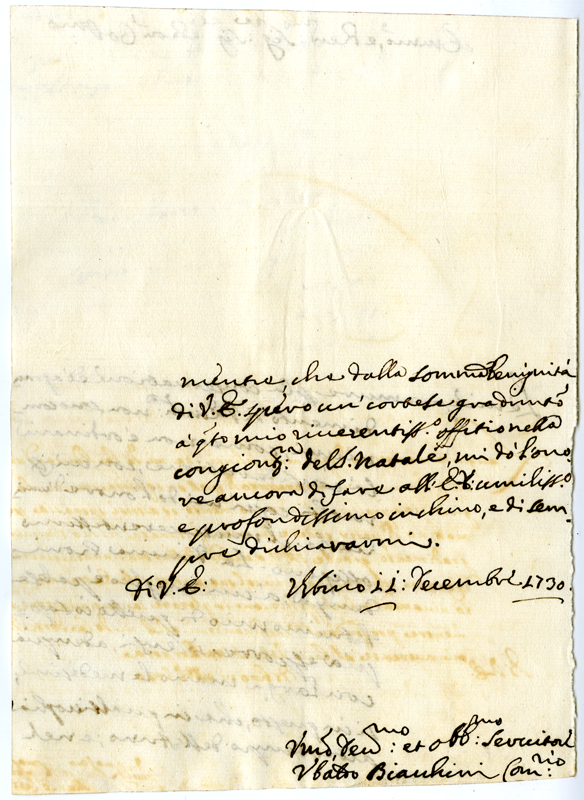 Lettera di Ubaldo Biacchini al cardinale Annibale Albani (1730 dicembre 11)