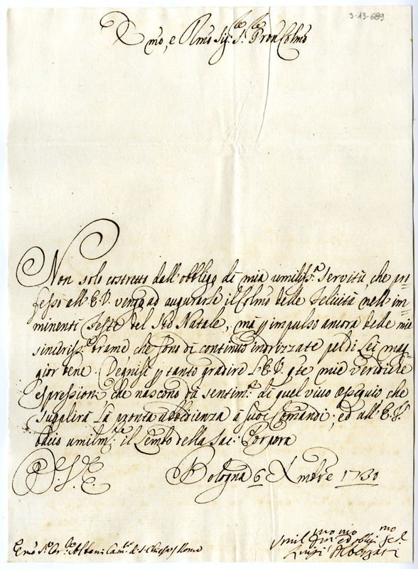 Lettera di Luigi Albergati al cardinale Annibale Albani (1730 dicembre 6)