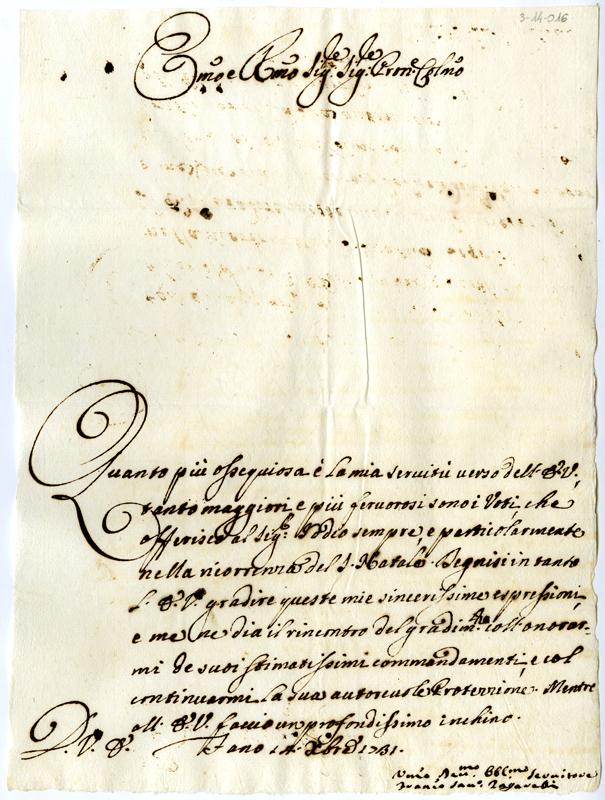 Lettera di Franco Saverio Zagarelli al cardinale Annibale Albani (1731 dicembre 14)