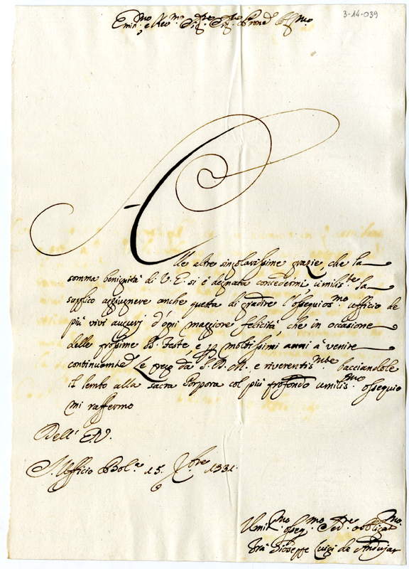 Lettera di fra Giuseppe Luigi de Andujar al cardinale Annibale Albani (1731 dicembre 15)