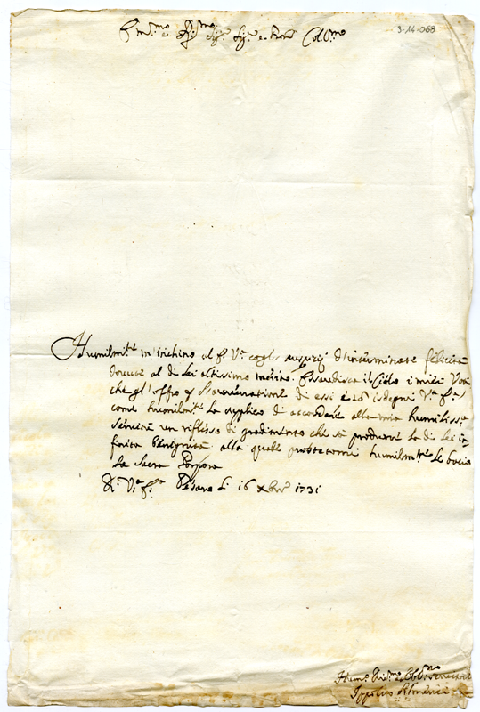 Lettera di Ippolito Almerici al cardinale Annibale Albani (1731 dicembre 16)
