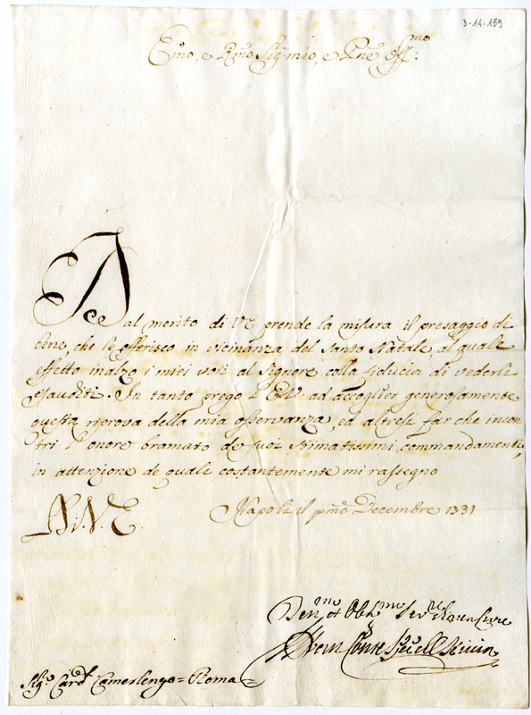 Lettera al cardinale Annibale Albani (1731 dicembre 1)