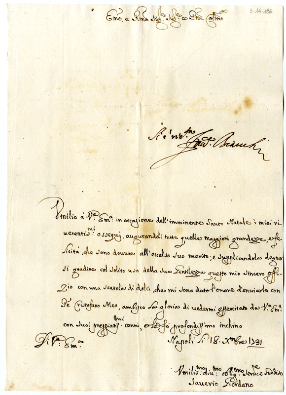 Lettera di Saverio Giordano al cardinale Annibale Albani (1731 dicembre 18)