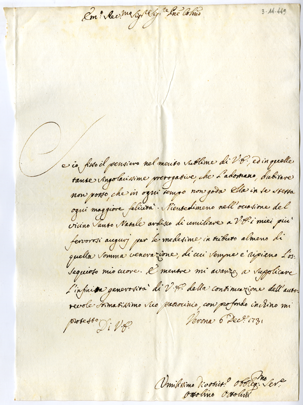 Lettera di Ottolino Ottolini al cardinale Annibale Albani (1731 dicembre 6)