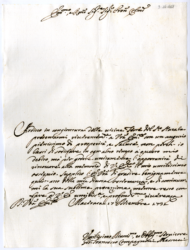 Lettera di Giovanni Francesco Compagnoni Mastucci al cardinale Annibale Albani (1731 dicembre 17)