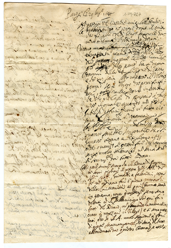 Minuta di lettera scritta da Malatesta Albani al cardinale Barberini Francesco (1644 luglio 29)