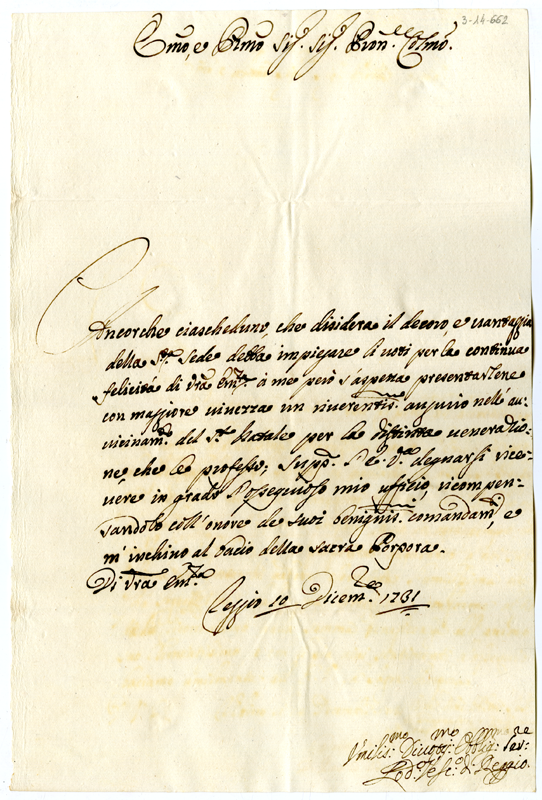 Lettera di Lodovico vescovo di Reggio al cardinale Annibale Albani (1731 dicembre 10)