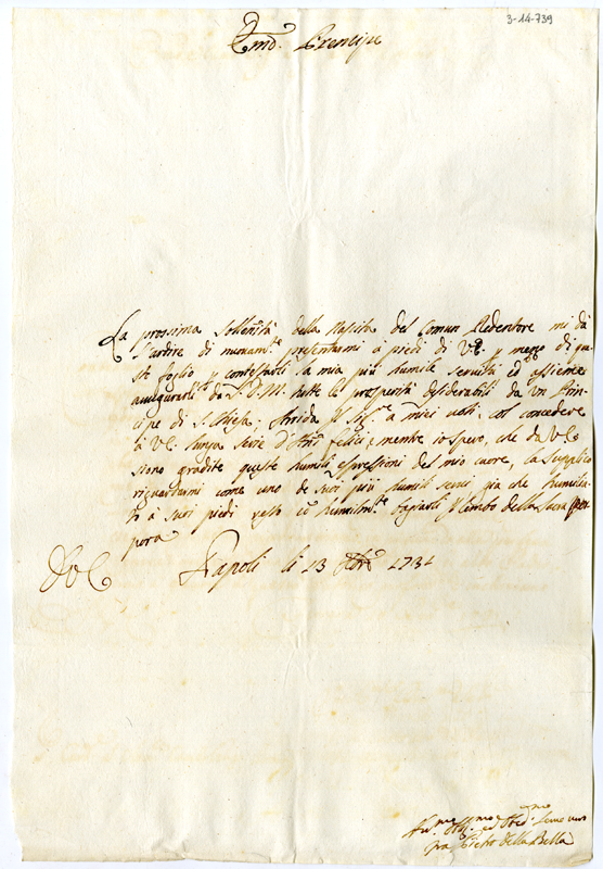 Lettera di fra Pietro della Bella al cardinale Annibale Albani (1731 dicembre 13)