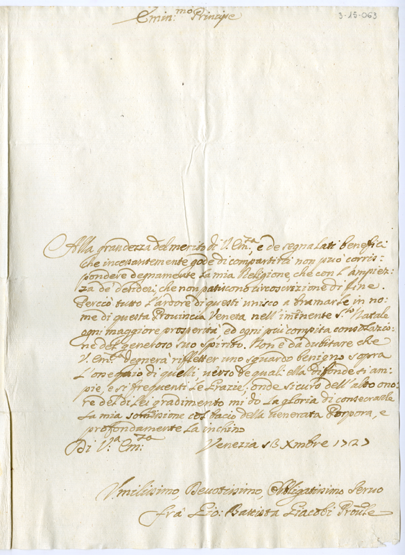 Lettera di Giovanni Battista Giacobi al cardinale Annibale Albani (1727 dicembre 13)