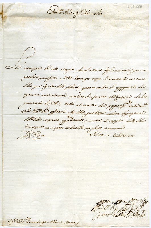 Lettera di Camilla Borromeo al cardinale Annibale Albani (1727 dicembre 12)