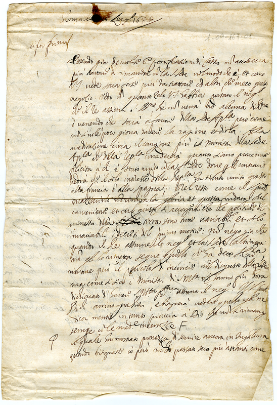 Lettera del cardinale Barberini Francesco senior a Malatesta Albani (1644 luglio 25)