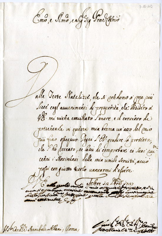 Lettera di Pietro Maria vescovo di Feltre al cardinale Annibale Albani (1727 dicembre 12)