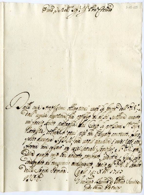 Lettera di Giovanni Luca Patrizi al cardinale Annibale Albanbi (1727 dicembre 12)