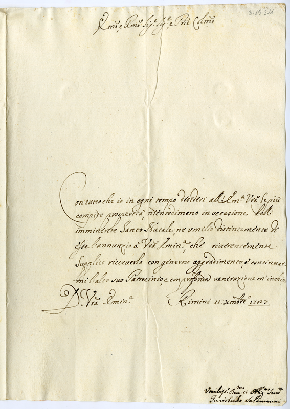 Lettera di Guidobaldo Salamanni al cardinale Annibale Albani (1727 dicembre 11)