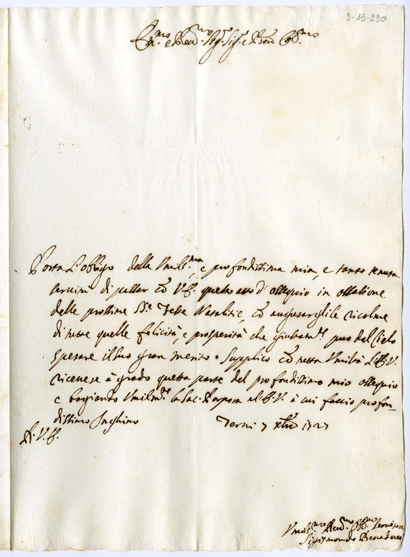 Lettera di Sigismondo Benaduci al cardinale Annibale Albani (1727 dicembre 7)