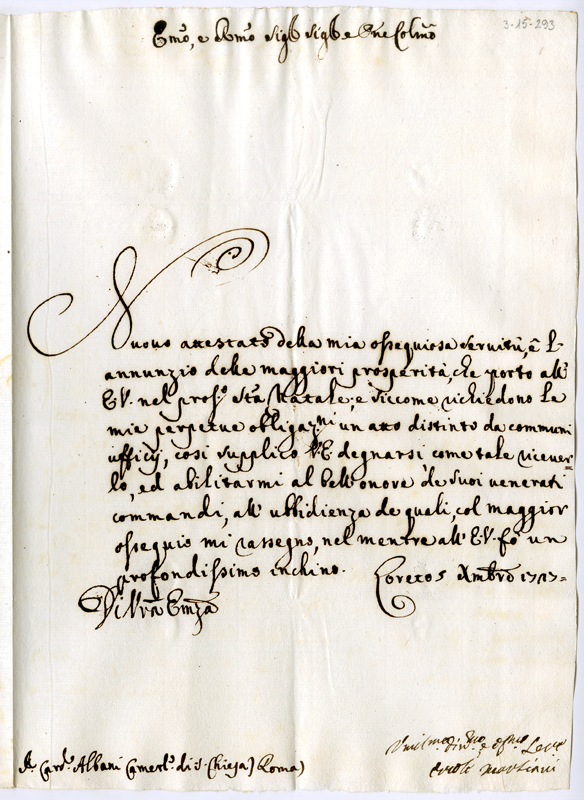 Lettera di Ercole Marliani al cardinale Annibale Albani (1727 dicembre 5)
