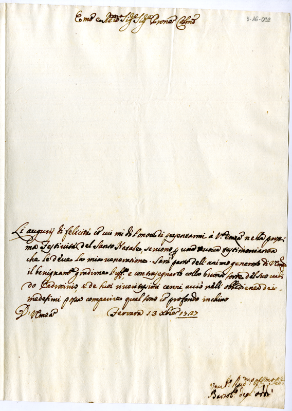 Lettera di Bartolomeo degli Oddi al cardinale Annibale Albani (1727 dicembre 13)