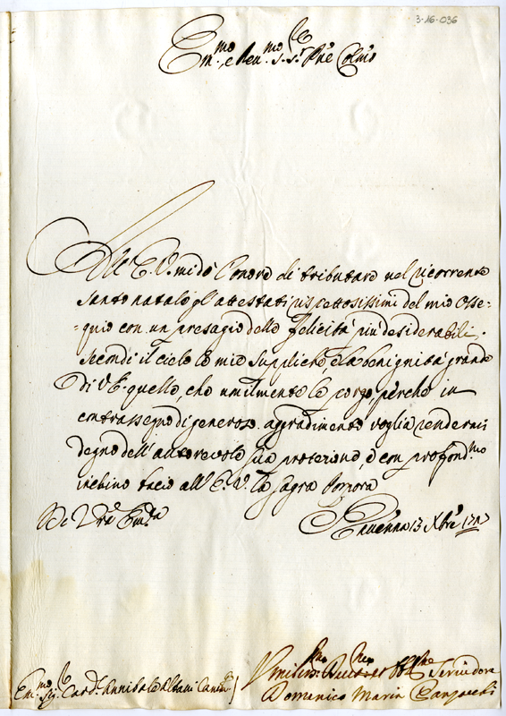 Lettera di Domenico Maria Cansacchi al cardinale Annibale Albani (1727 dicembre 13)