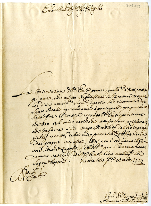 Lettera di Francesco vescovo di Umbriatico al cardinale Annibale Albani (1727 dicembre 1)