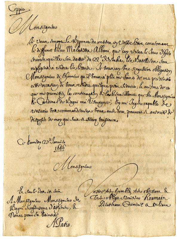 Copie di lettere sull'affare del testamento di Malatesta Albani