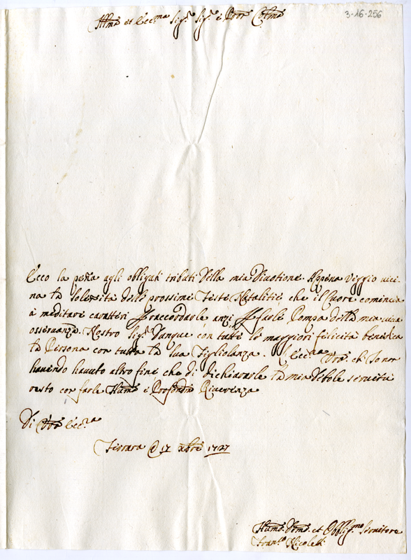 Lettera di Francesco Nicoletti al cardinale Annibale Albani (1727 dicembre 17)