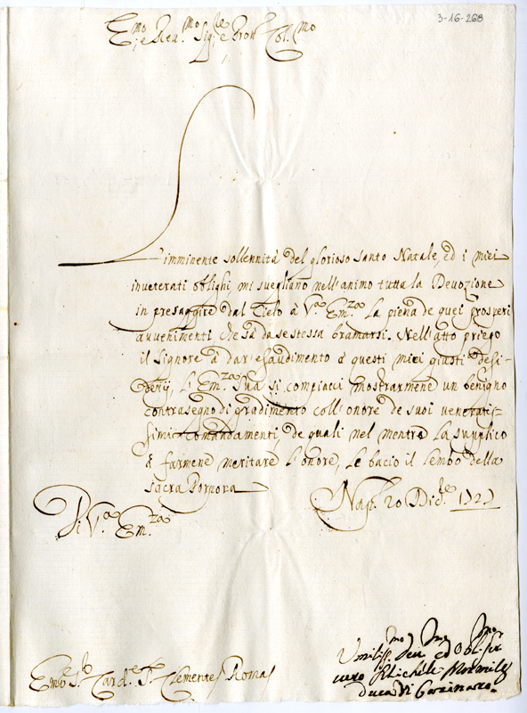 Lettera di Michele Mormile al cardinale Annibale Albani (1727 dicembre 20)