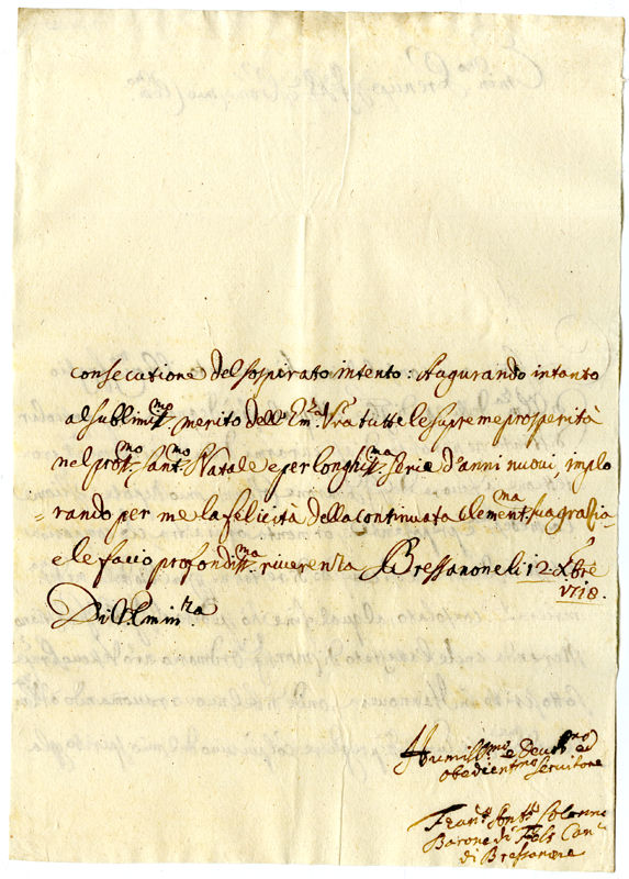 Lettera di Francesco Antonio Colonna al cardinale Annibale Albani (1718 dicembre 12)