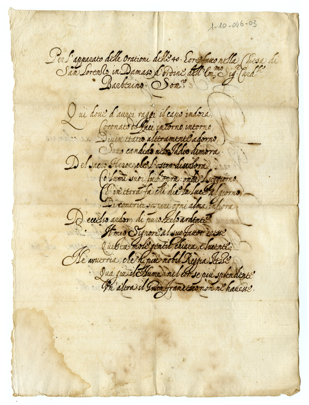 Per l'apparato delle orazioni delle 40 hore fatto nella chiesa di S. Lorenzo in Damaso d'ordine dell'Illustrissimo Signor Cardinale Barberino. Sonetto
