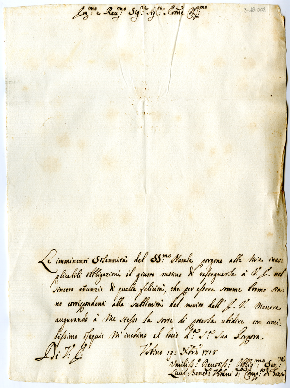Lettera di Livio Benedetto Urbani ad Annibale Albani (1718 dicembre 19)