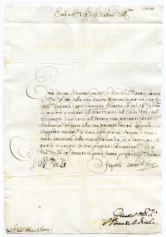 Lettera del duca di San Nicola al cardinale Annibale Albani (1718 dicembre)