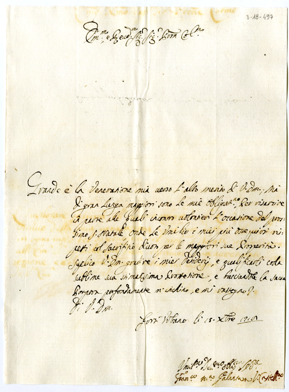 Lettera di Francesco Maria Galantara ad Annibale Albani (1718 dicembre 15)