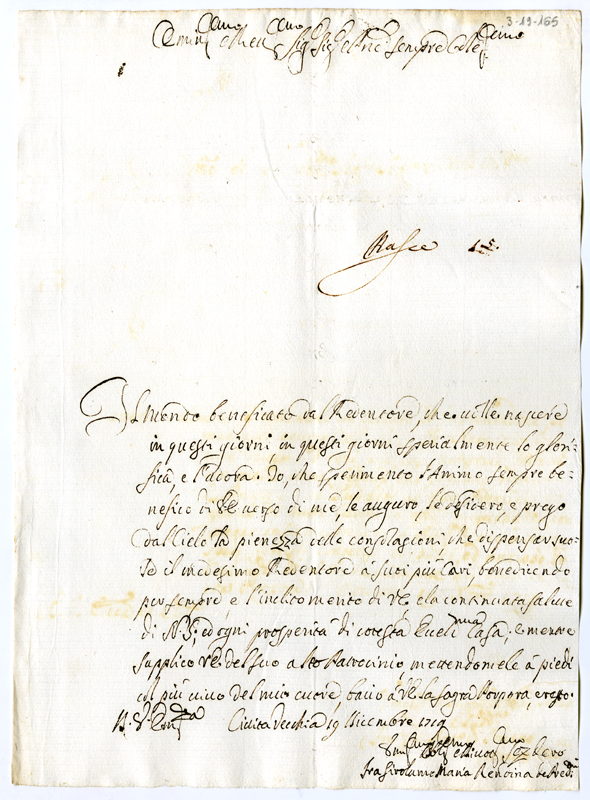 Lettera di fra Girolamo Maria Rendina ad Annibale Albani (1719 dicembre 19)