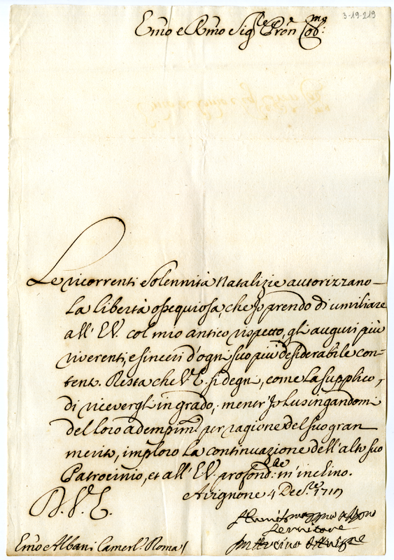 Lettera al cardinale Annibale Albani (1719 dicembre 4)