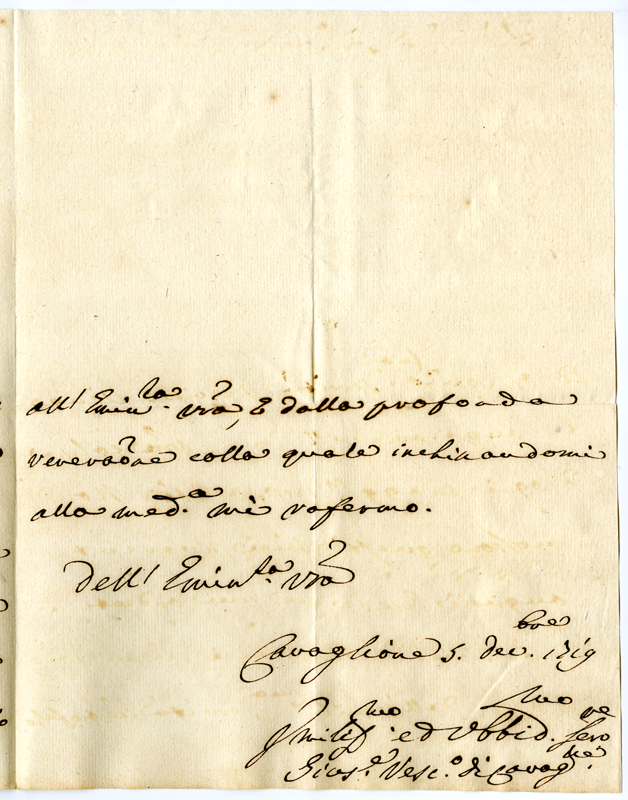 Lettera di Giuseppe vescovo di Cavaglione ad Annibale Albani (1719 dicembre 5)