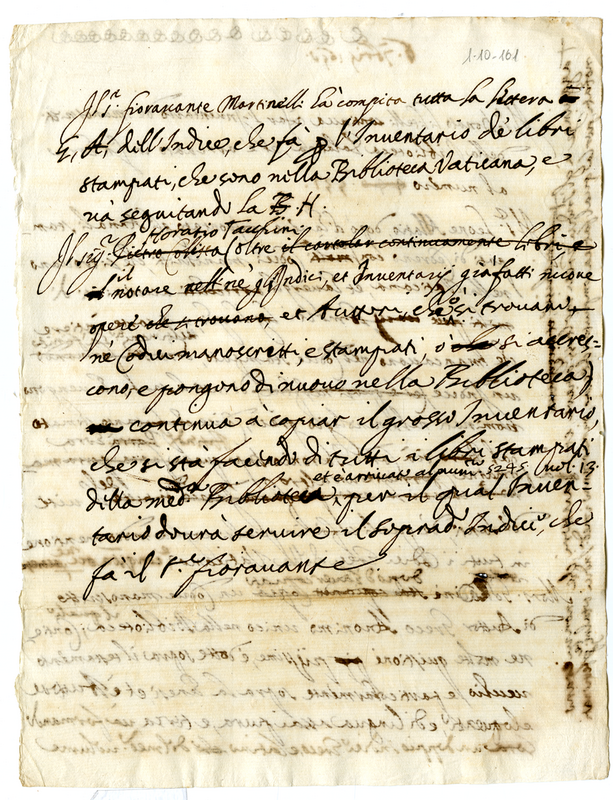 Annotazione di Annibale Albani sui collaboratori che lavorano nella Biblioteca Vaticana (1650 settembre 6)