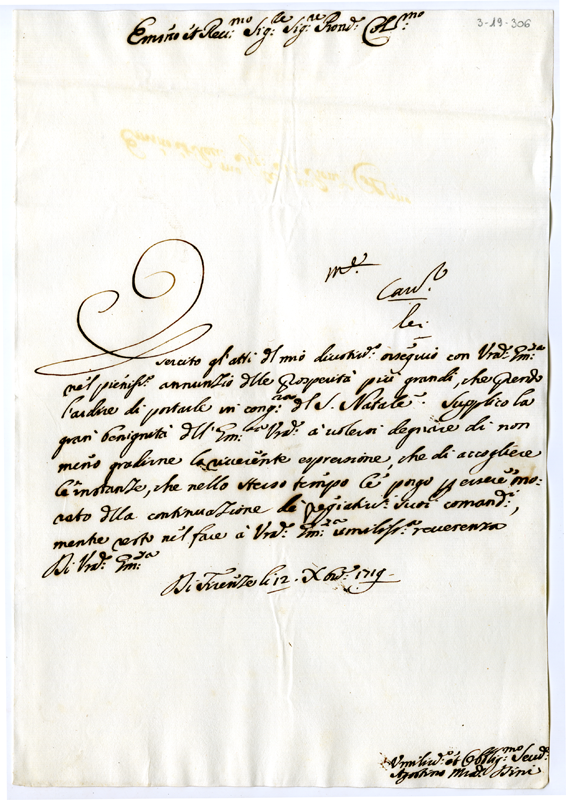 Lettera di Agostino Maria Dini ad Annibale Albani (1719 dicembre 12)
