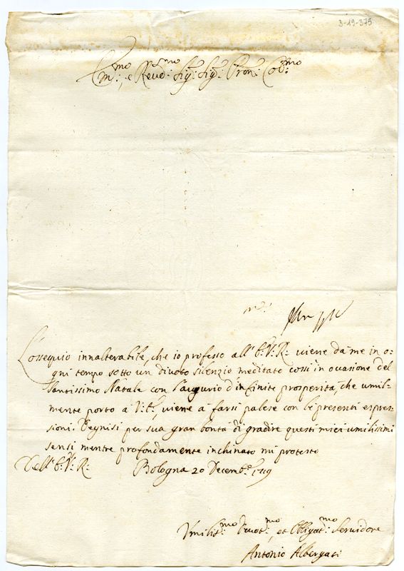 Lettera di Antonio Albergati ad Annibale Albani (1719 dicembre 20)