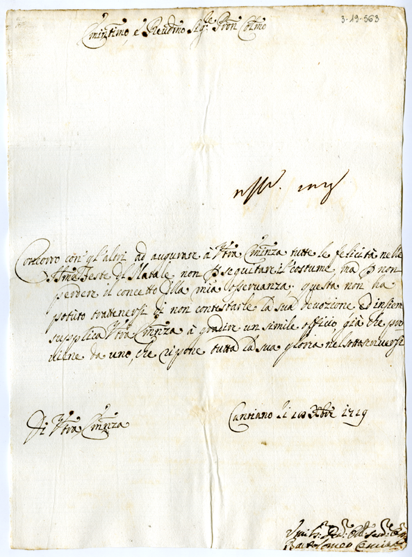 Lettera di Bartolomeo Cenciatti ad Annibale Albani (1719 dicembre 18)