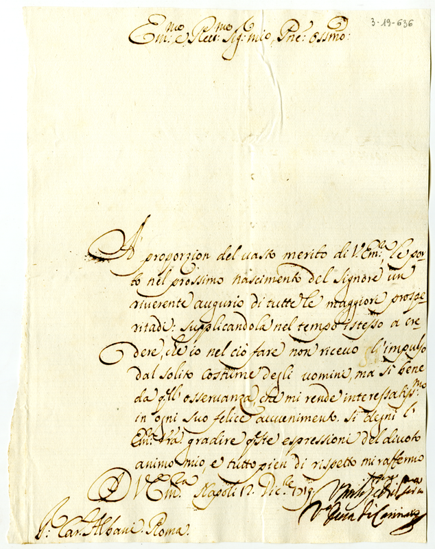 Lettera al cardinale Annibale Albani (1719 dicembre 12)