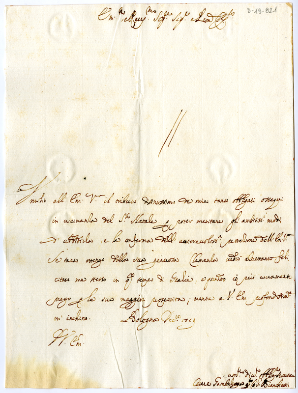 Lettera di Cesare Gambalunga ad Annibale Albani (1719 dicembre)