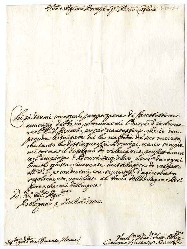 Lettera di Giacomo Vincenzo Danzi al cardinale Annibale Albani (1728 dicembre 8)