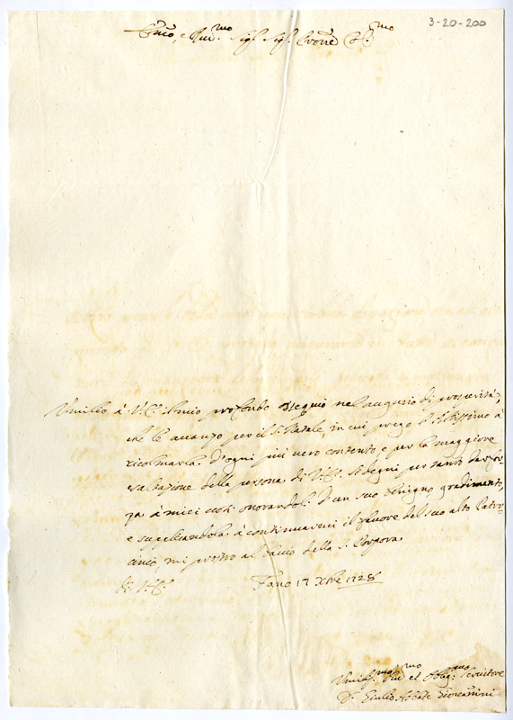 Lettera di Giulio Giovannini al cardinale Annibale Albani (1728 dicembre 17)
