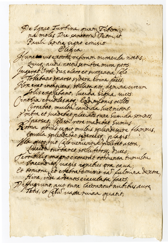 De igneo turbine, quem tiberina moles die sancturum Petri et Pauli letiziae signo emisit. Elegia
