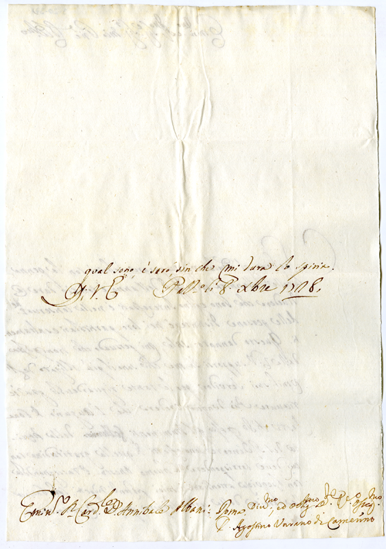 Lettera di Agostino Varano di Camerino al cardinale Annibale Albani (1728 dicembre 8)