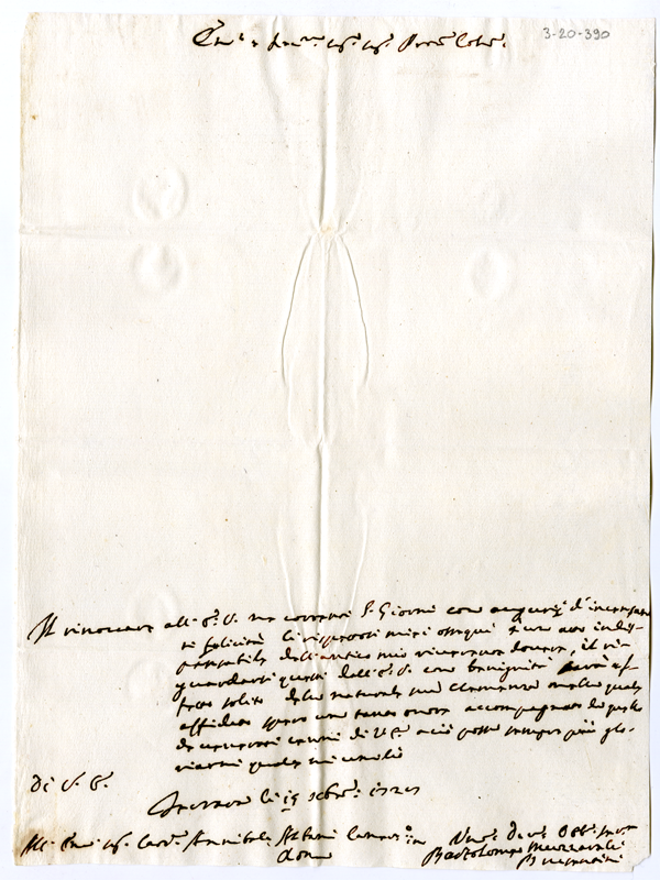 Lettera di Bartolomeo Muzzarelli Bergantini al cardinale Annibale Albani (1728 dicembre 15)