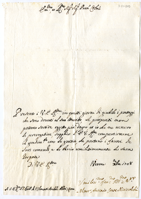 Lettera di Marc'Antonio Maniscalchi al cardinale Annibale Albani (1728)